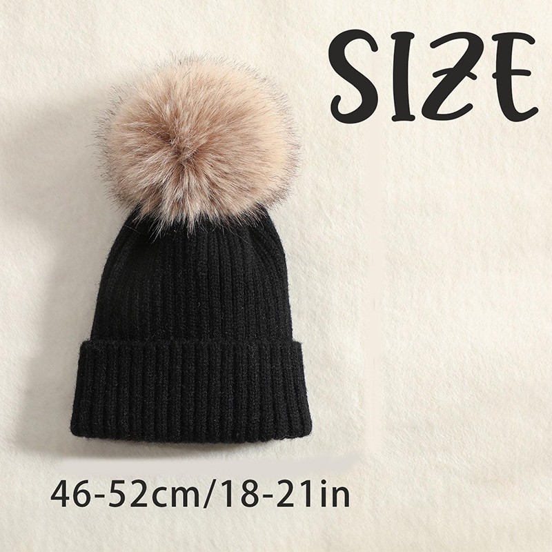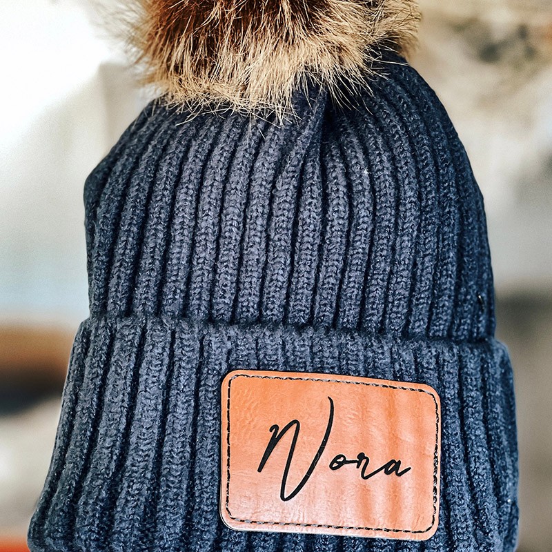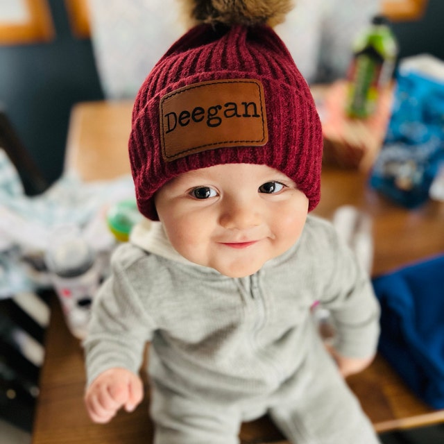 Custom Name Winter kids Pom Pom Beanie Hat with Patch Name