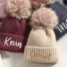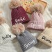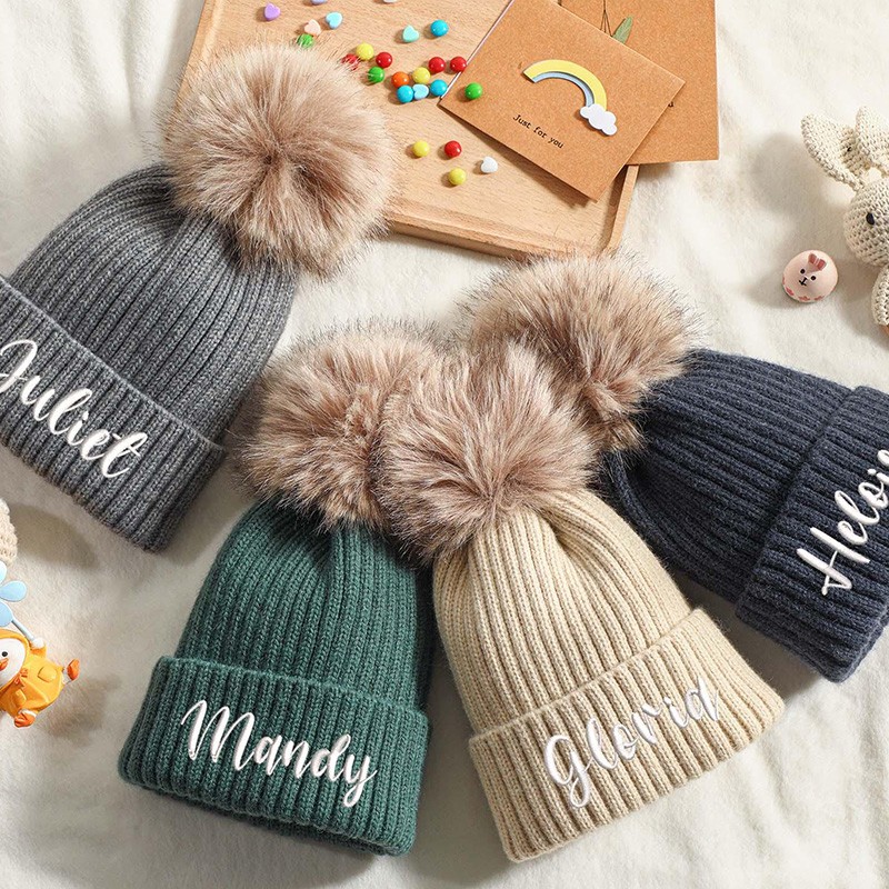 Personalized Baby Pom Pom Embroidered Name Beanie Knitted Hat Newborn Gift