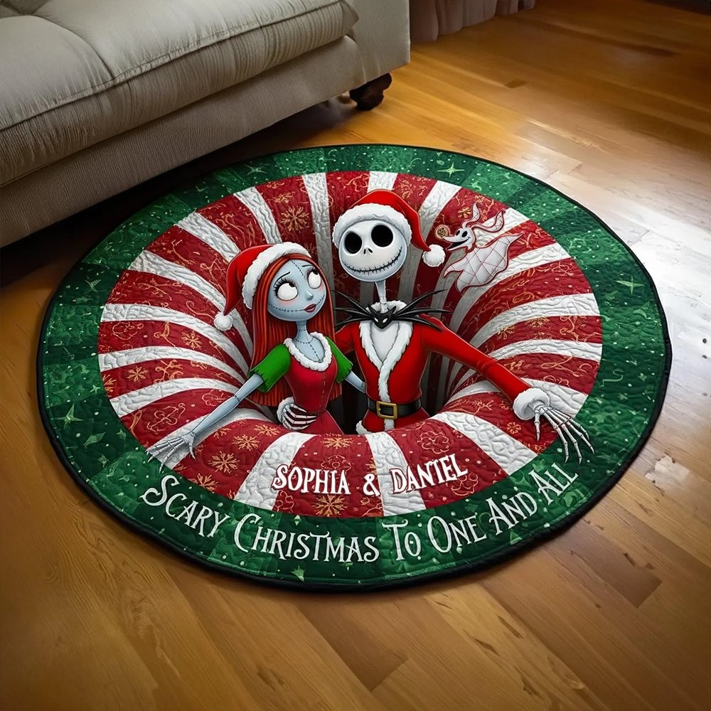 Personalized Christmas Spooky Cartoon Couple Round Mat Welcome Rug Christmas Rug Decor Gift For Husband