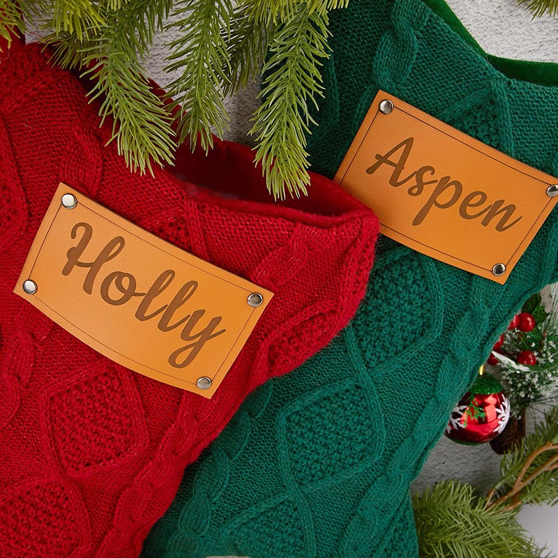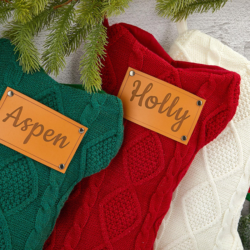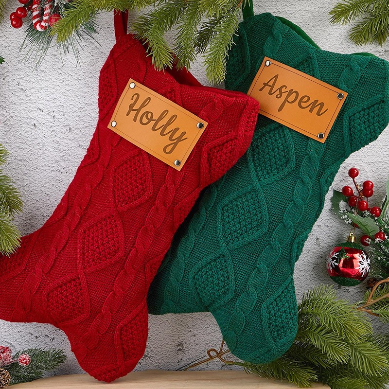 Personalized Dog Bone Christmas Engraved Leather Patch Bone Shaped Dog Stocking with Name