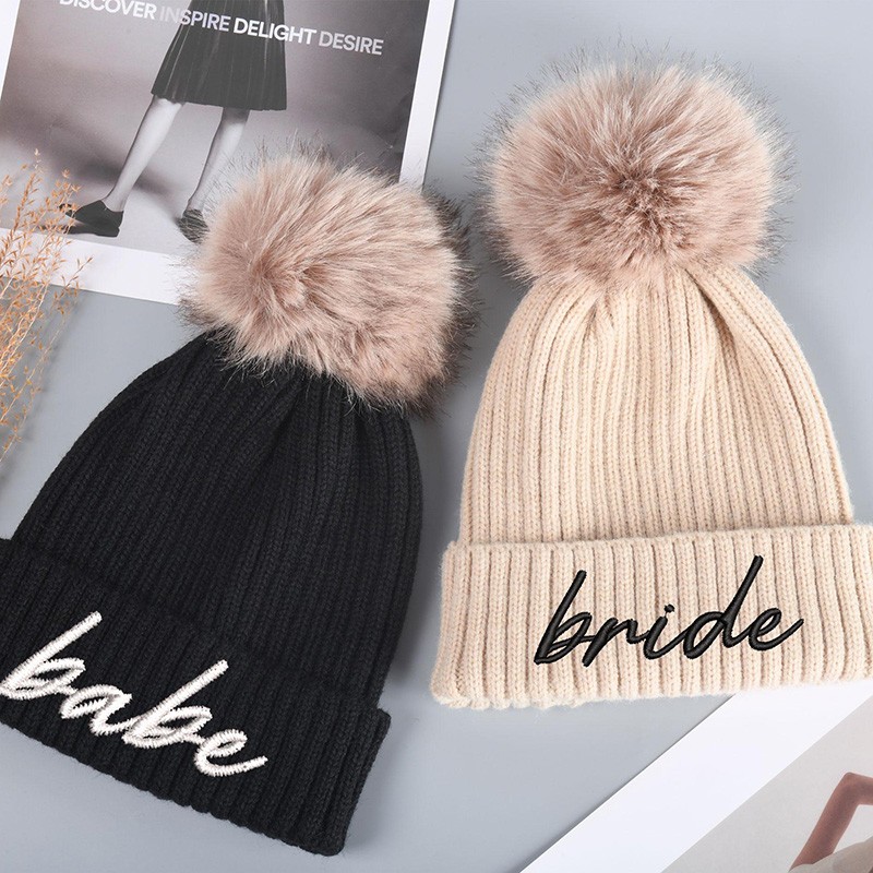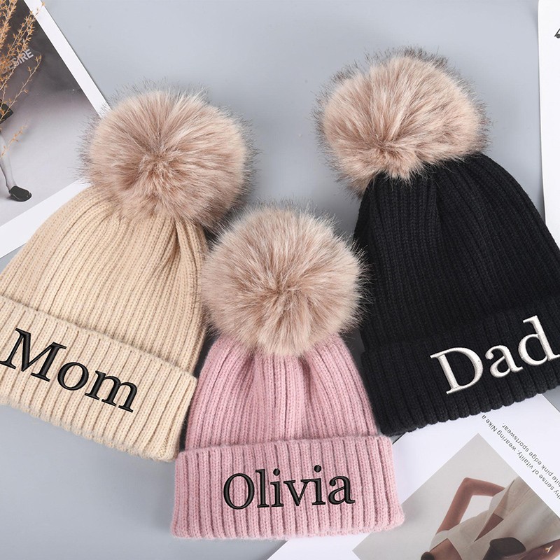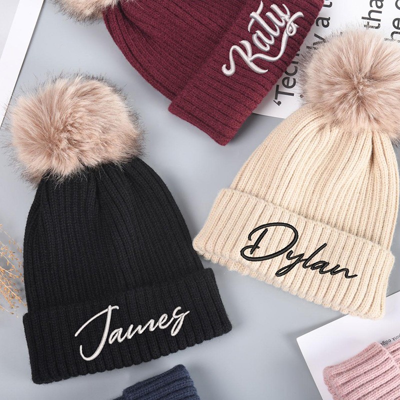 Personalized Embroidered Baby Beanie with Fur Pom-Pom Classic Monogram Adults Beanies