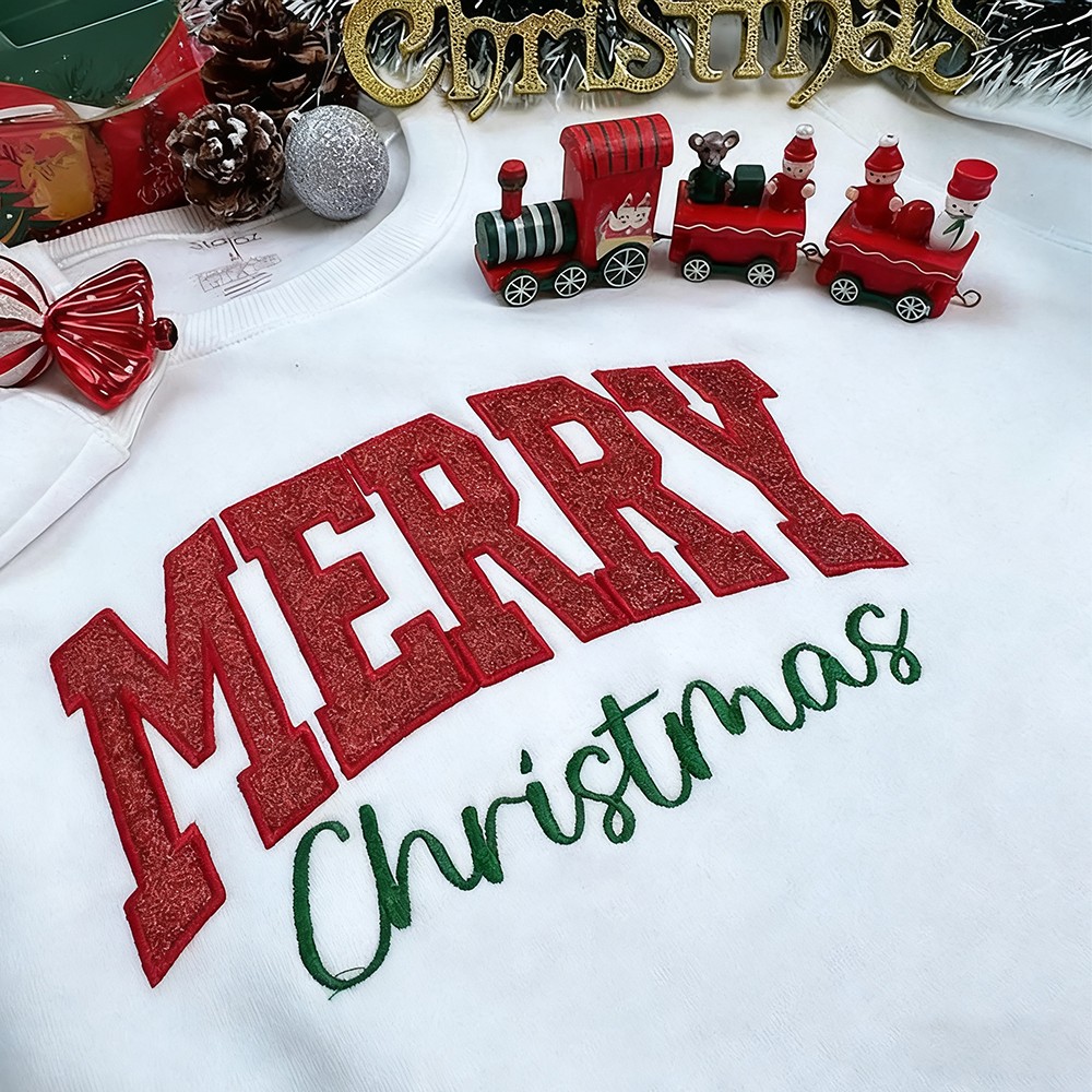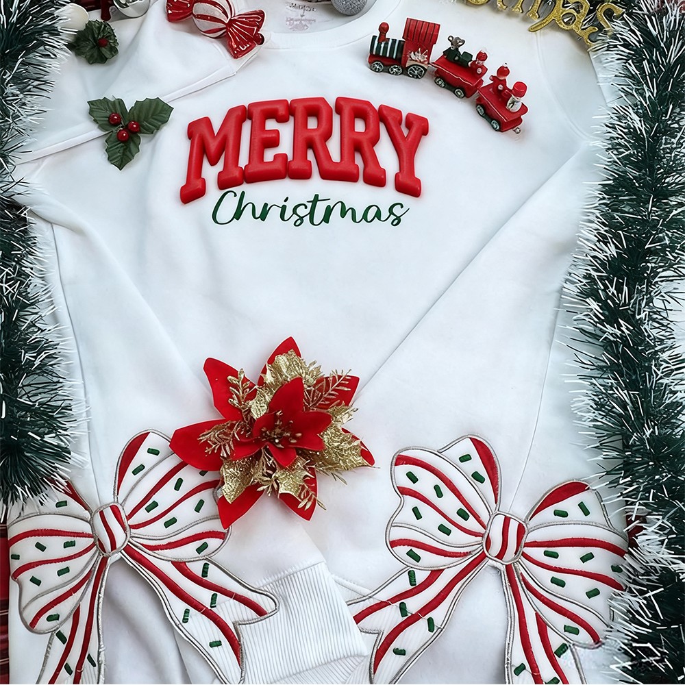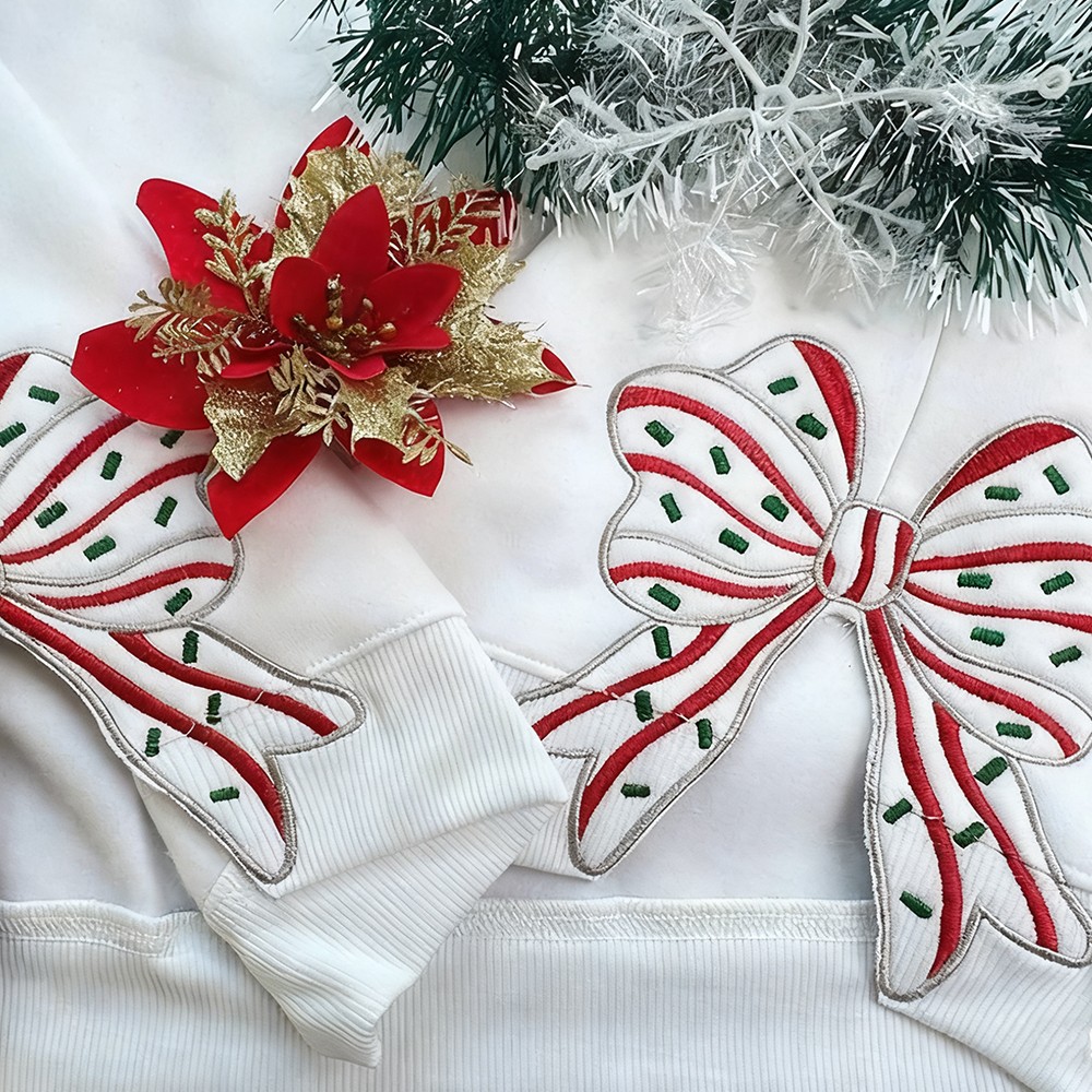 Personalized Embroidered Christmas Side Bow Cut-Out Sweatshirt with Name Christmas Embellished Funny Sweatshirt Christmas Gifts