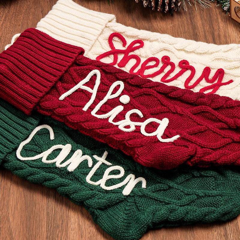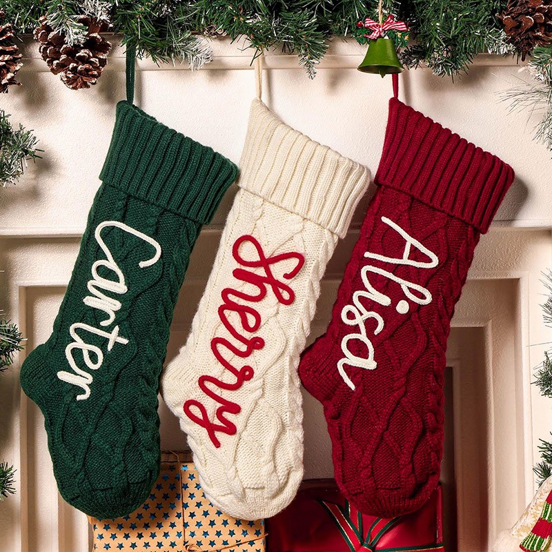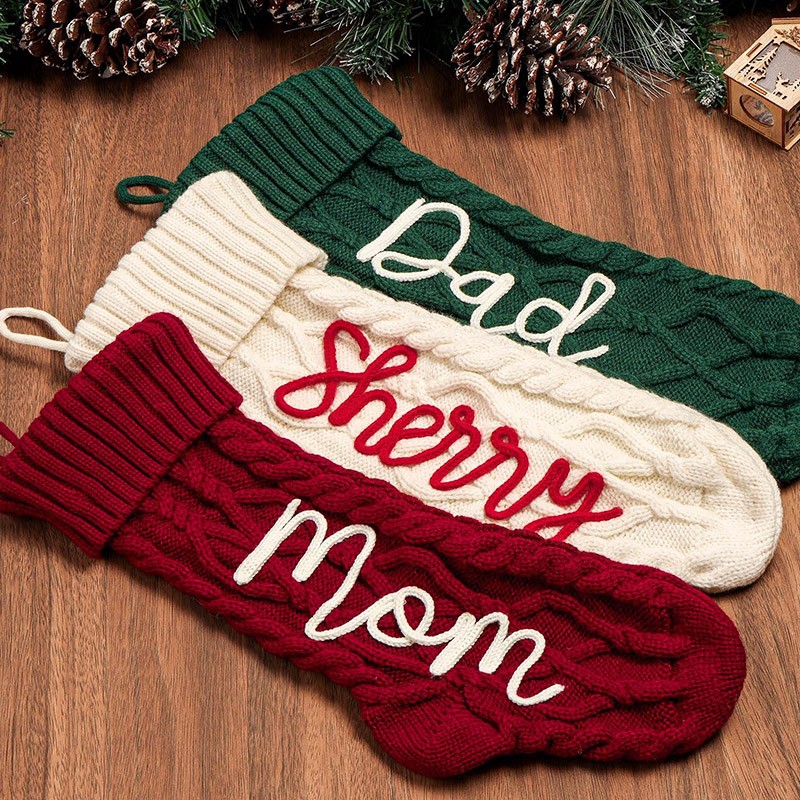 Personalized Knitted Christmas Stockings with Name Christmas Family Stockings Decor Gift