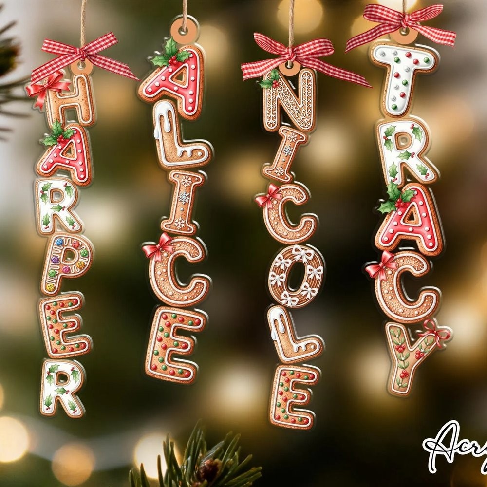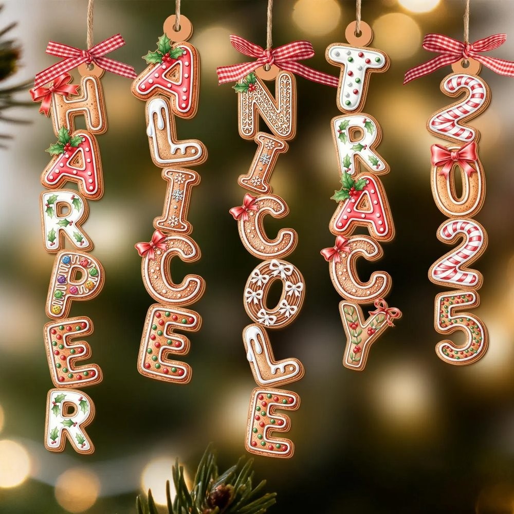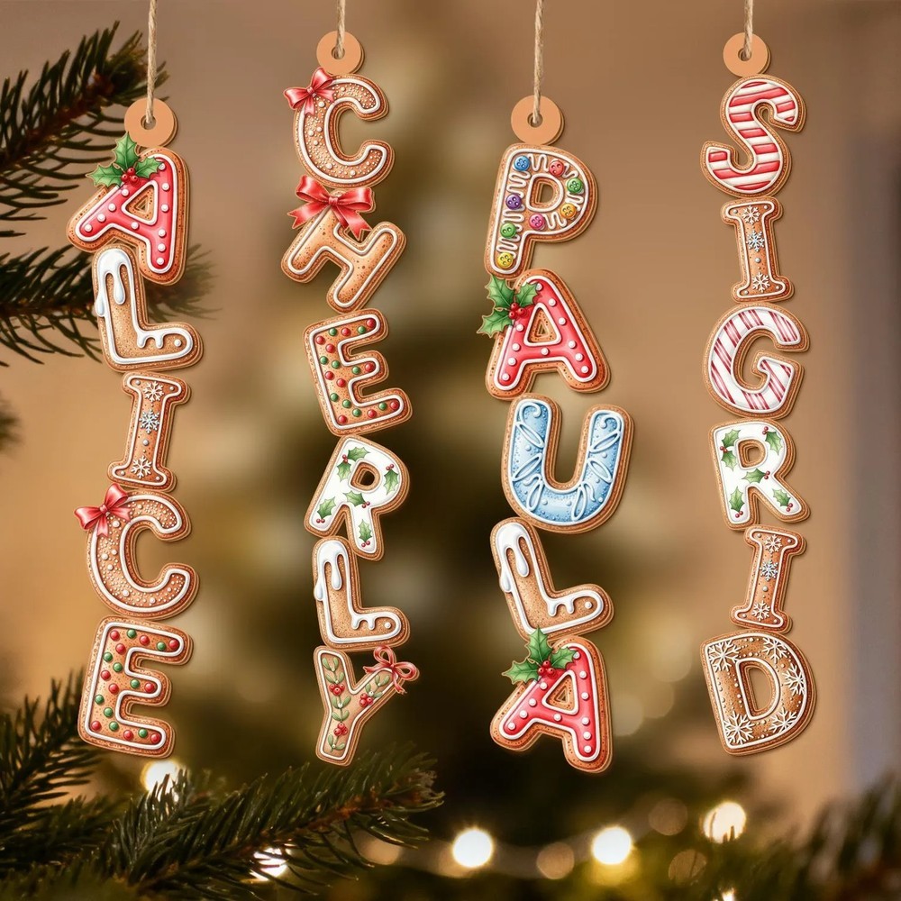 Personalized Gingerbread Alphabet Ornament Kids Name Ornament Christmas Tag for Stockings