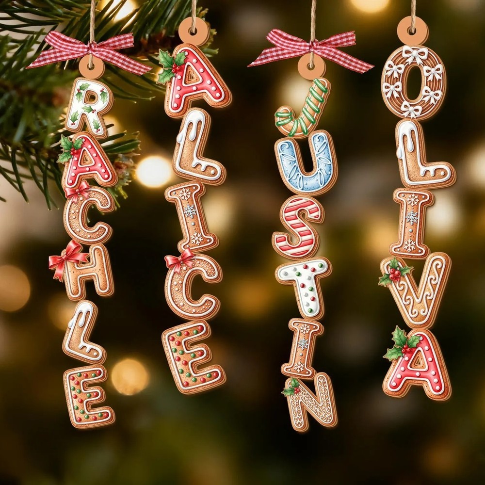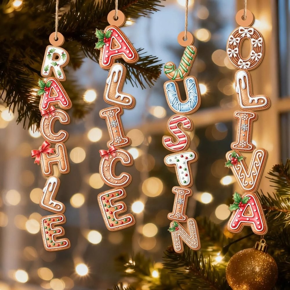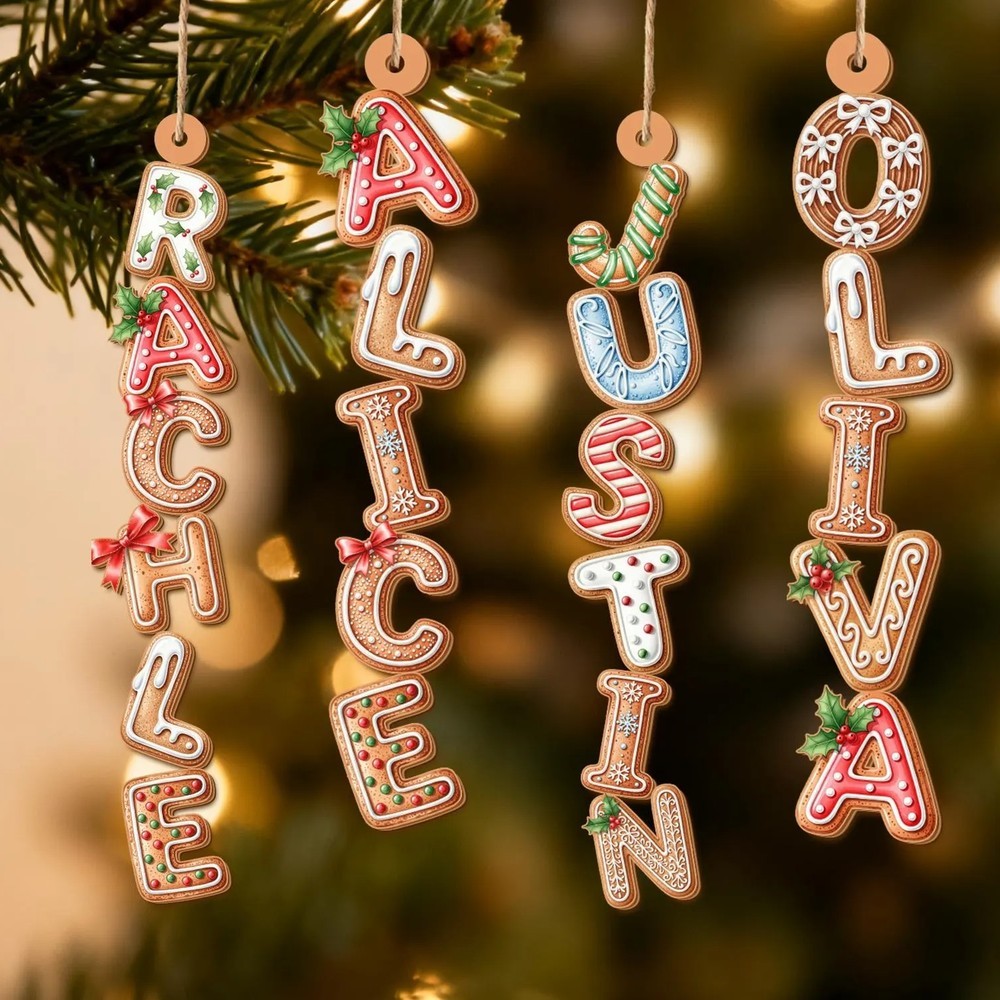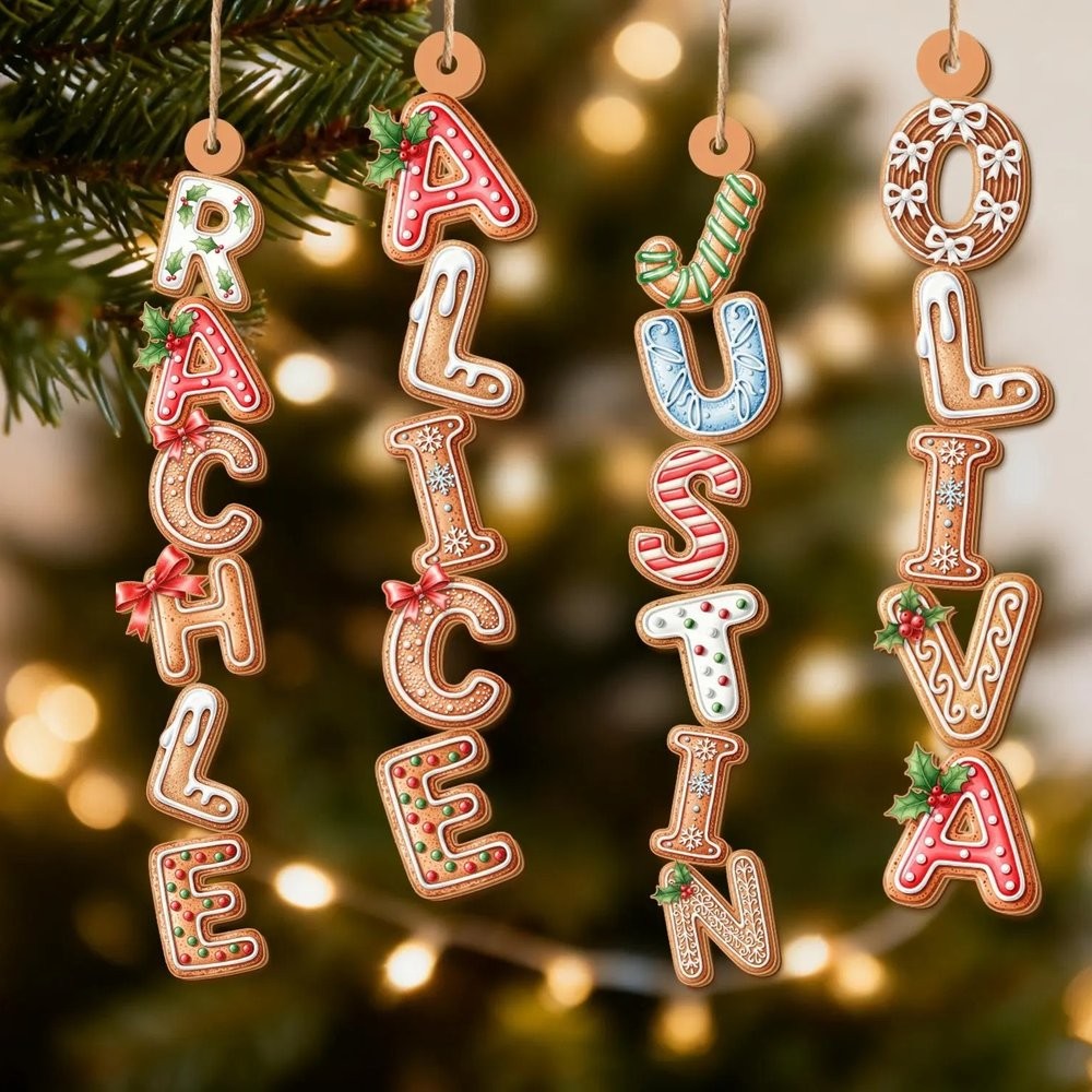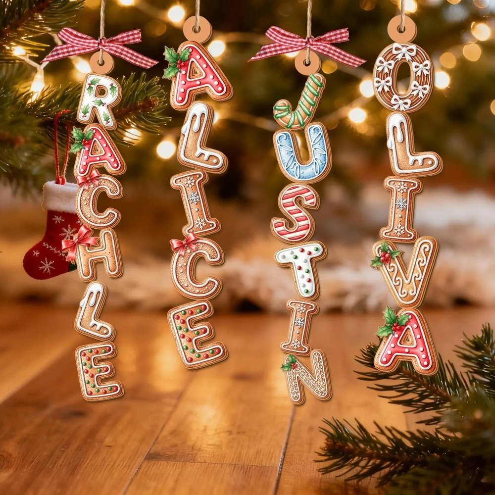 Personalized Gingerbread Alphabet Ornament Kids Name Ornament Christmas Tag for Stockings