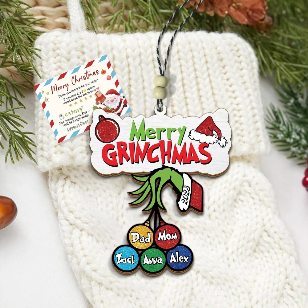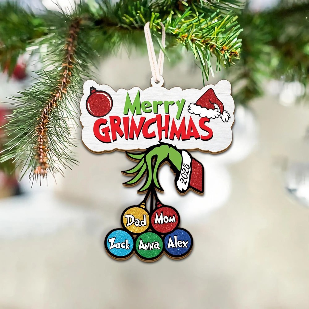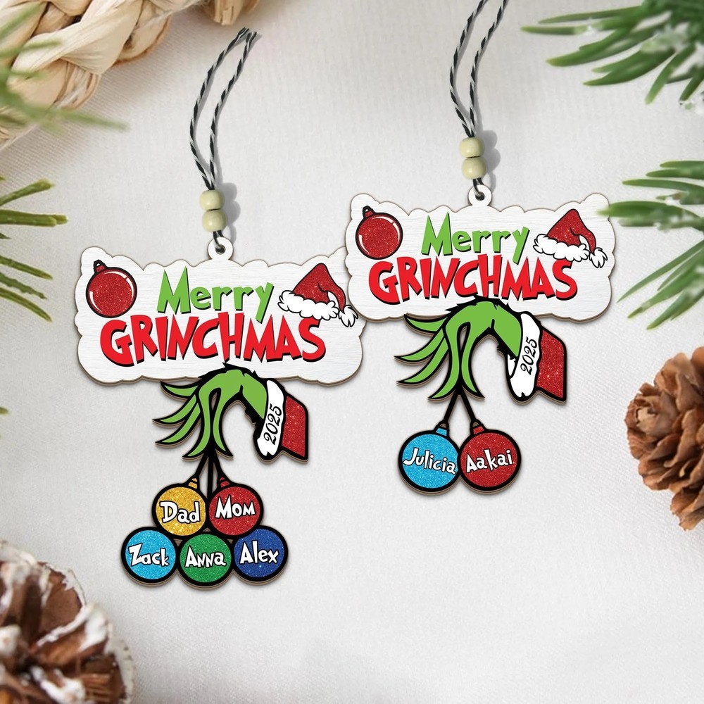 Personalized Grinch Ball Christmas Wooden Ornament Family Name Xmas Tree Hanging Decor
