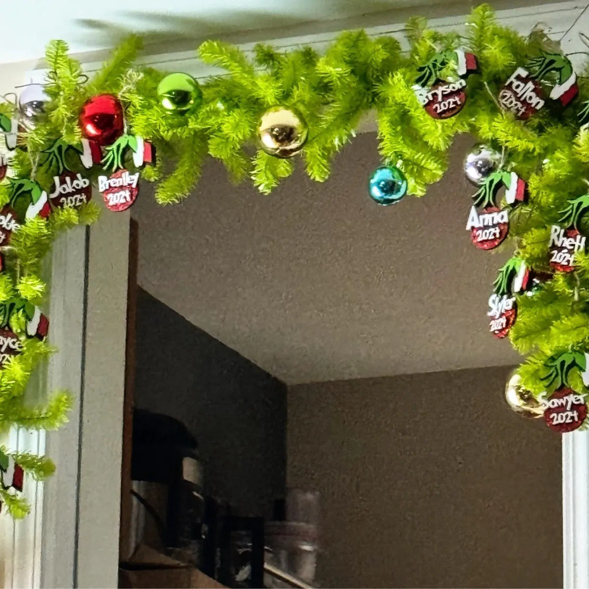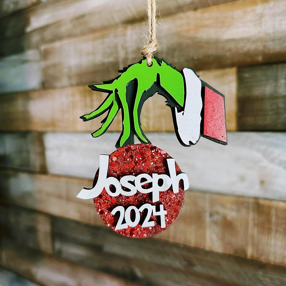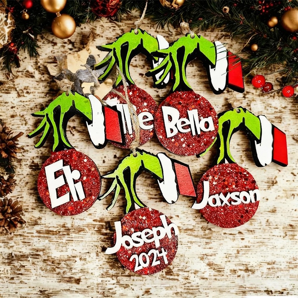Personalized Grinch Family Ornament Kids Name Xmas Tree Ornament Christmas Stocking Tag