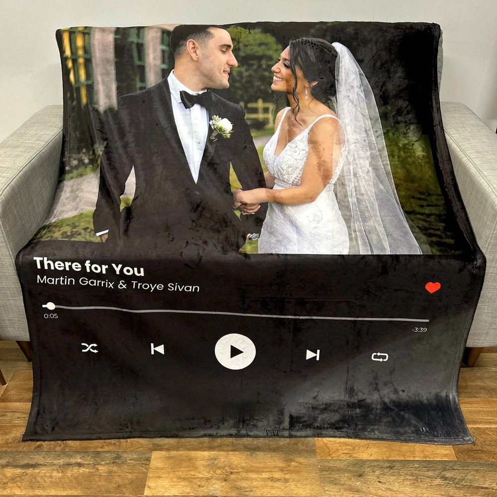 Personalized Picture Collage Music Blanket Couple Photo Memorial Blanket Anniversary Christmas Gift