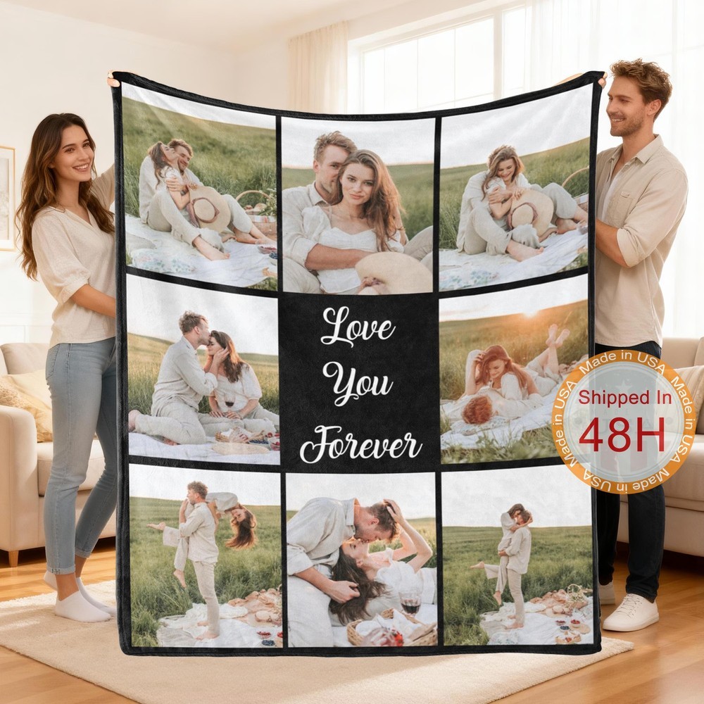 Personalized Picture Collage Text Blanket Family Photo Memorial Blanket Anniversary Christmas Gift