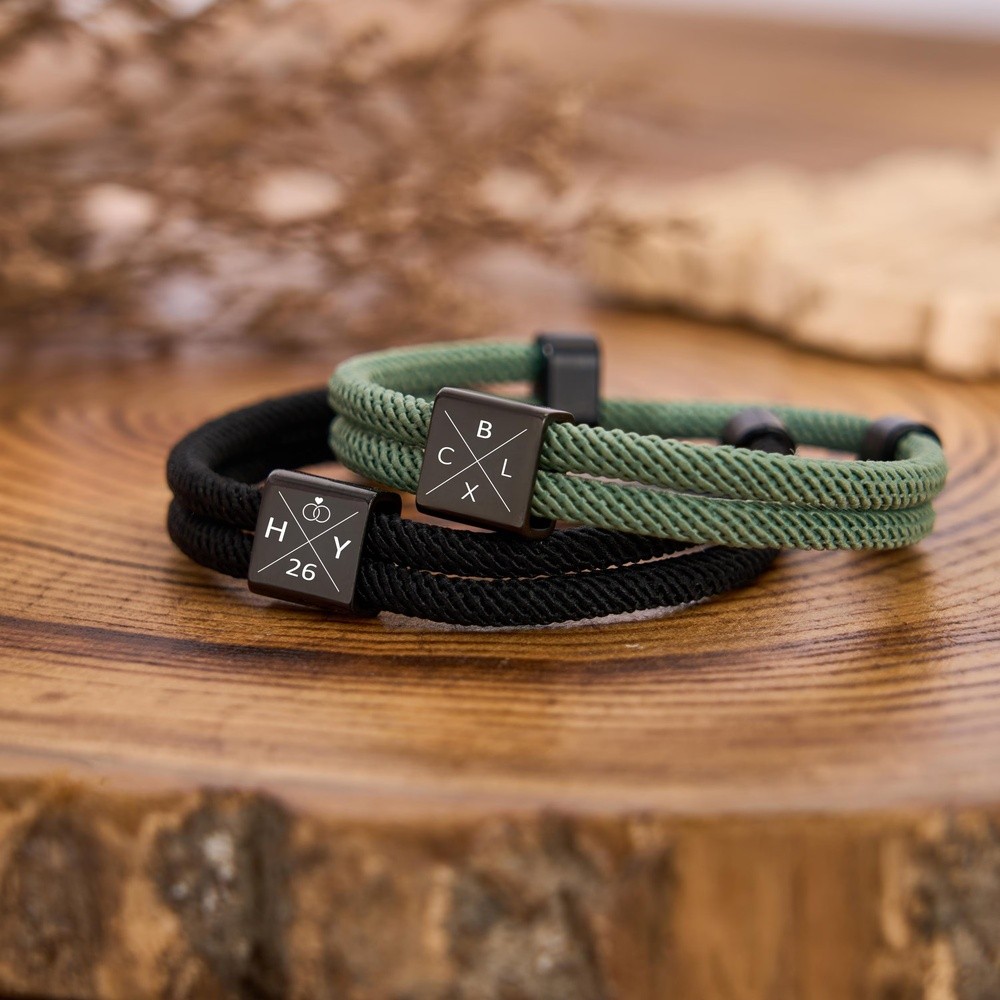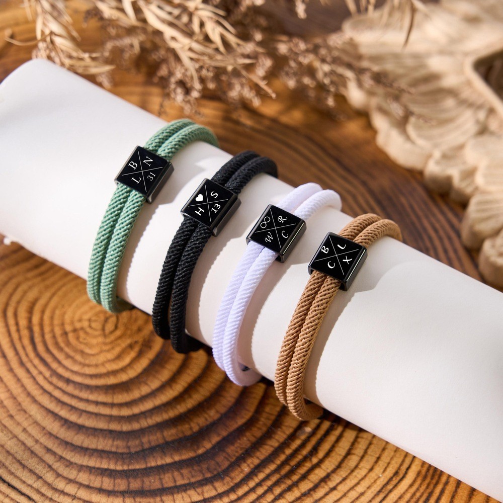 Personalized Initial Engraving Bracelet with Date Couple Bracelet Anniversary Gift