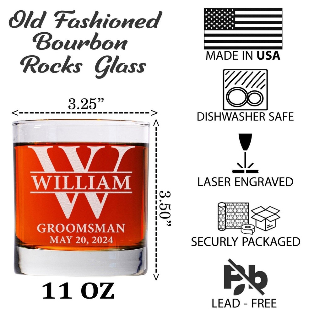 Personalized Groomsman 11oz Whiskey Glass Engraved Old Fashion Wedding Shot Glasses Unique Groomsmen Gifts