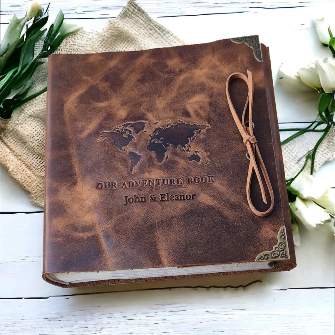 Personalized Genuine Leather World Map Photo Album Our Adventure Book Gift For Couple