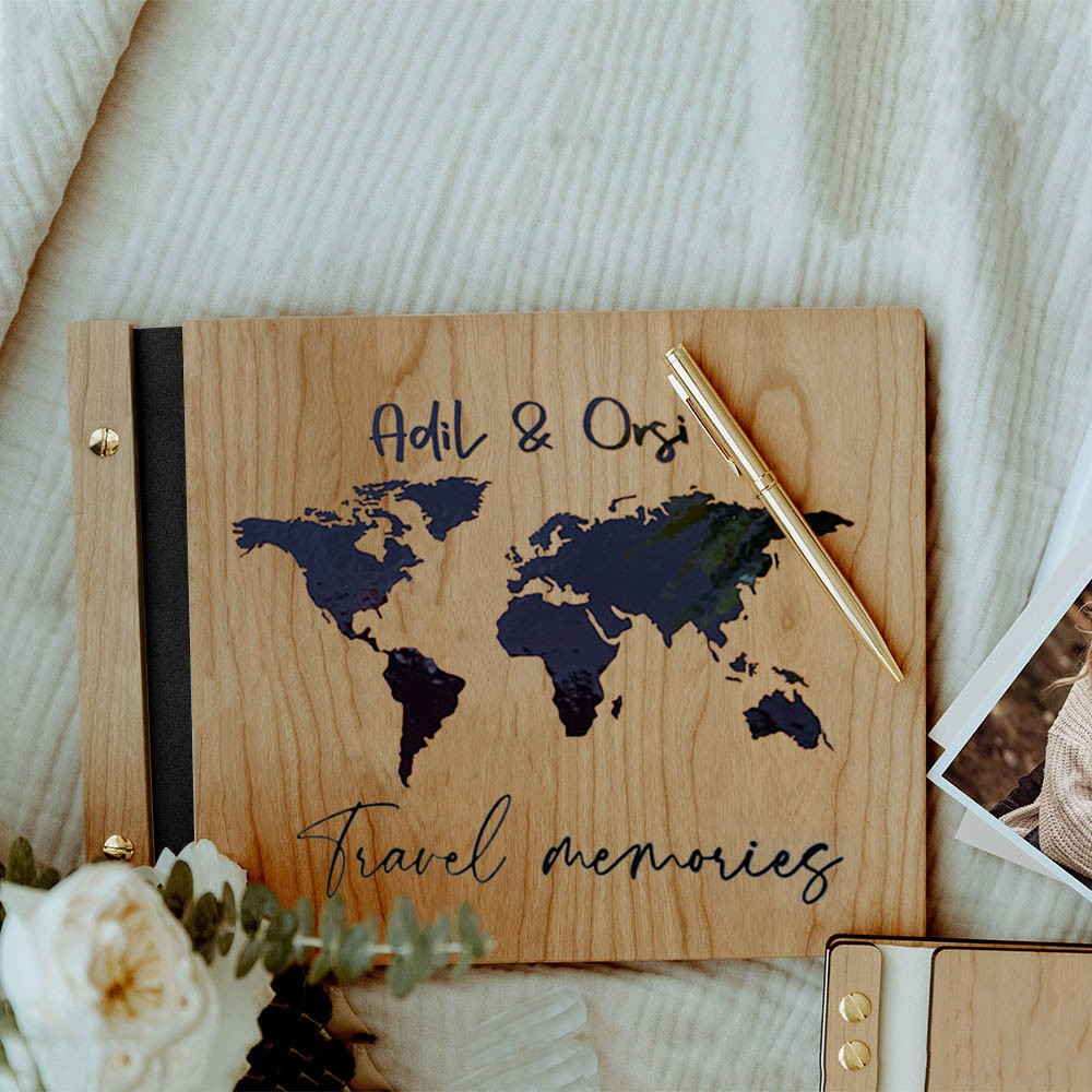 Personalized Wooden Adventure Book Photo Album Travel Memories Valentine's Day Anniversary Gift For Travel Lovers