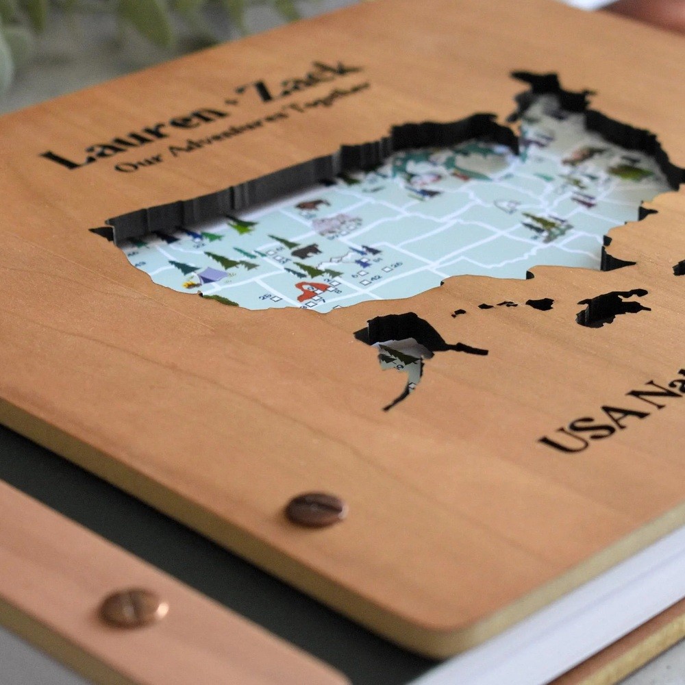 Personalized Wooden Travel Map Adventure Book Scrapbook Couples Travel Album Anniversary Gift Valentines Gift Christmas Gift