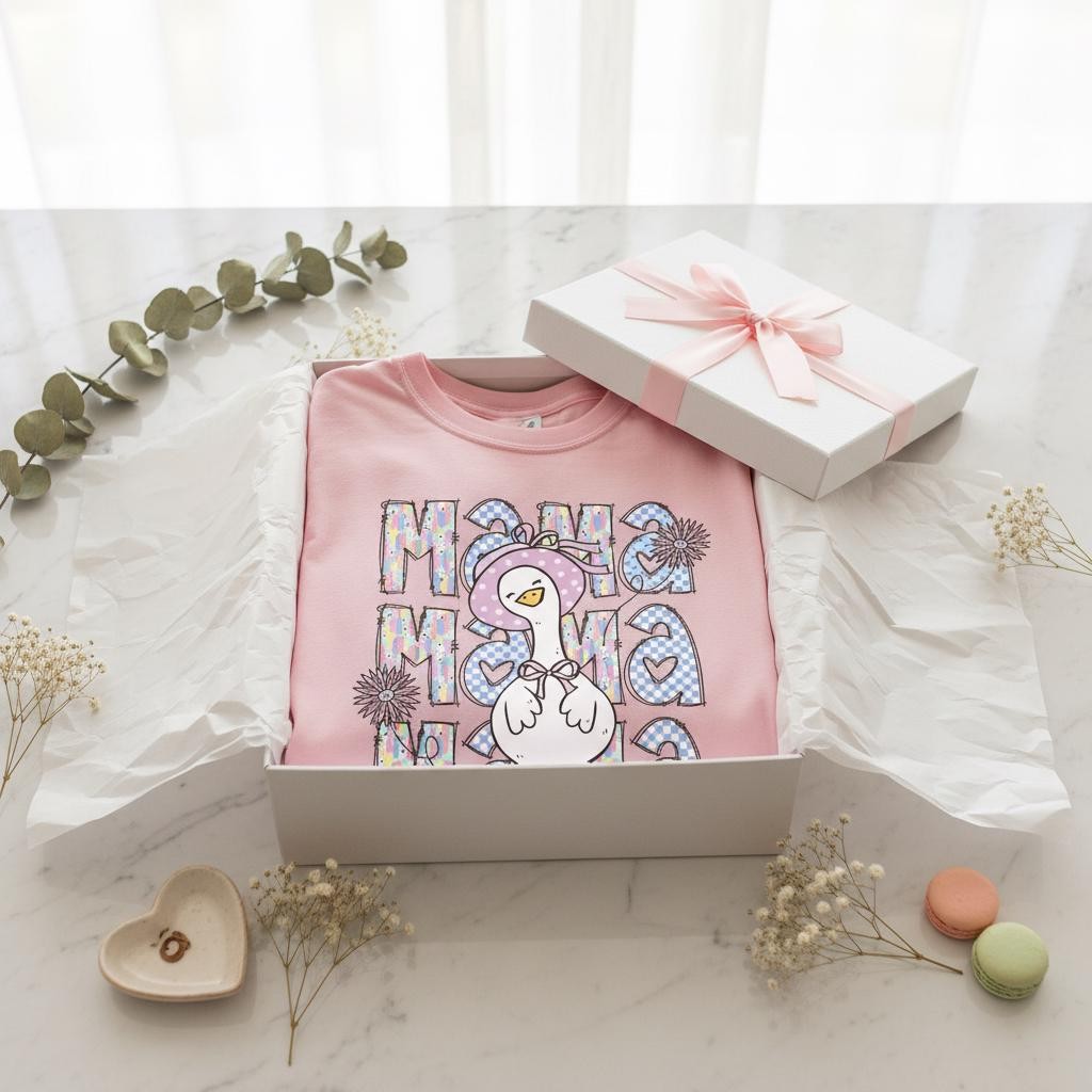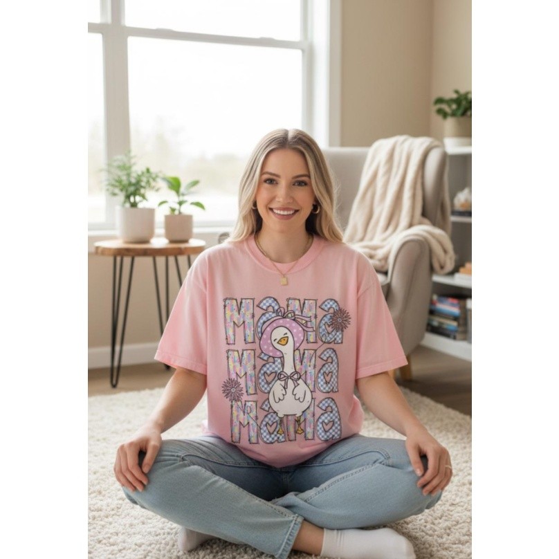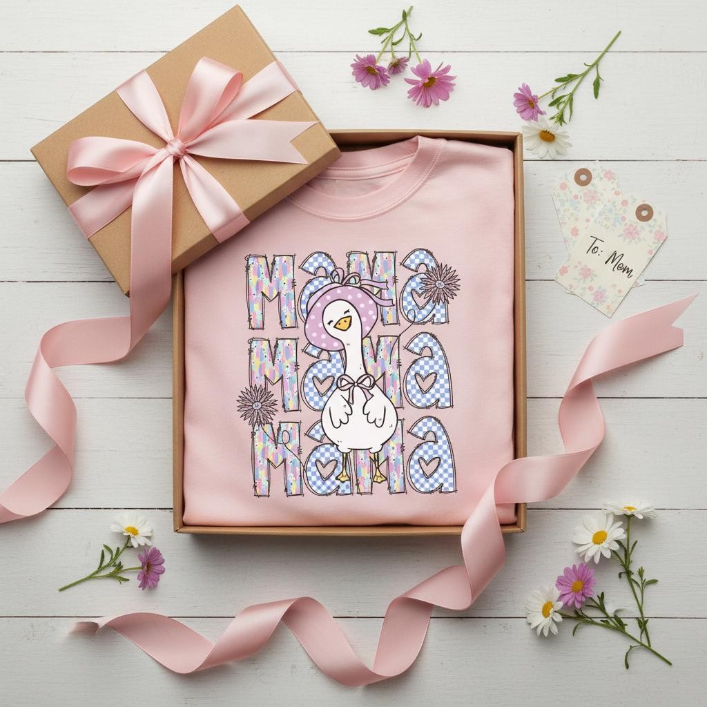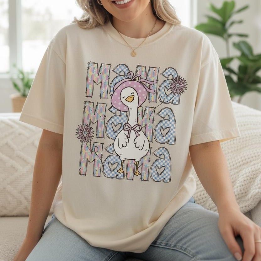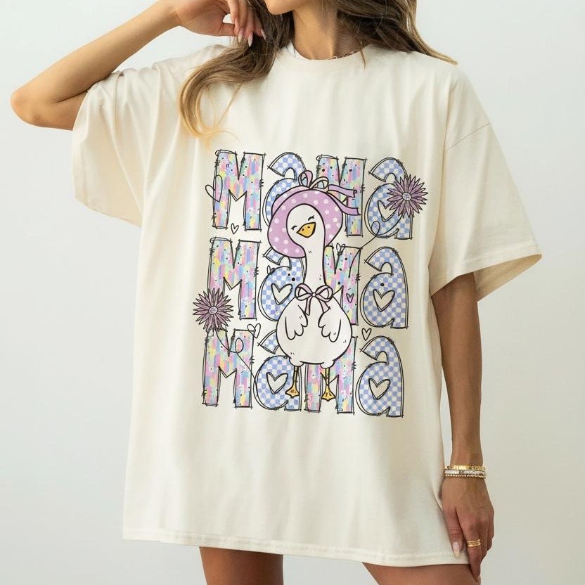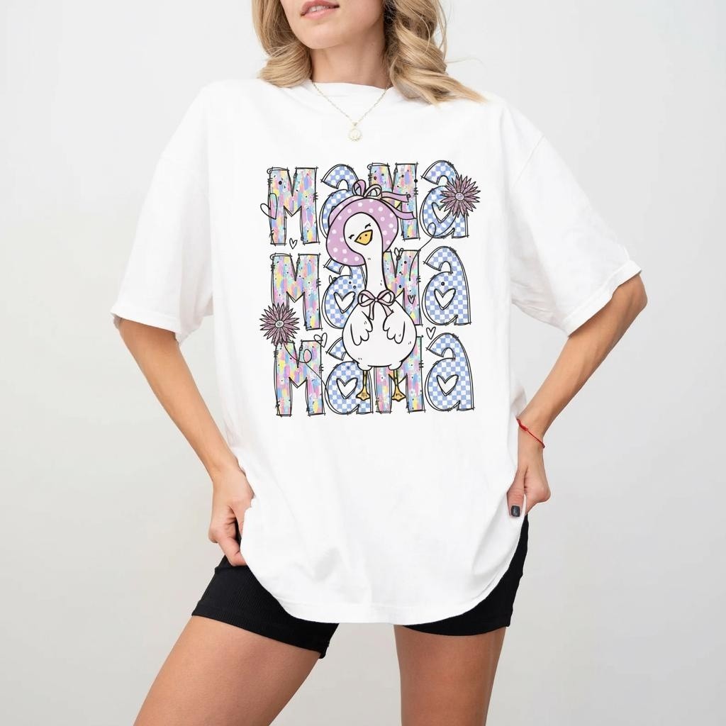 Personalized Mama Goose Shirt Mama Goose Shirt, Pastel Checkered Tee, Cartoon Graphic, Mom Life Apparel Gift For Mom
