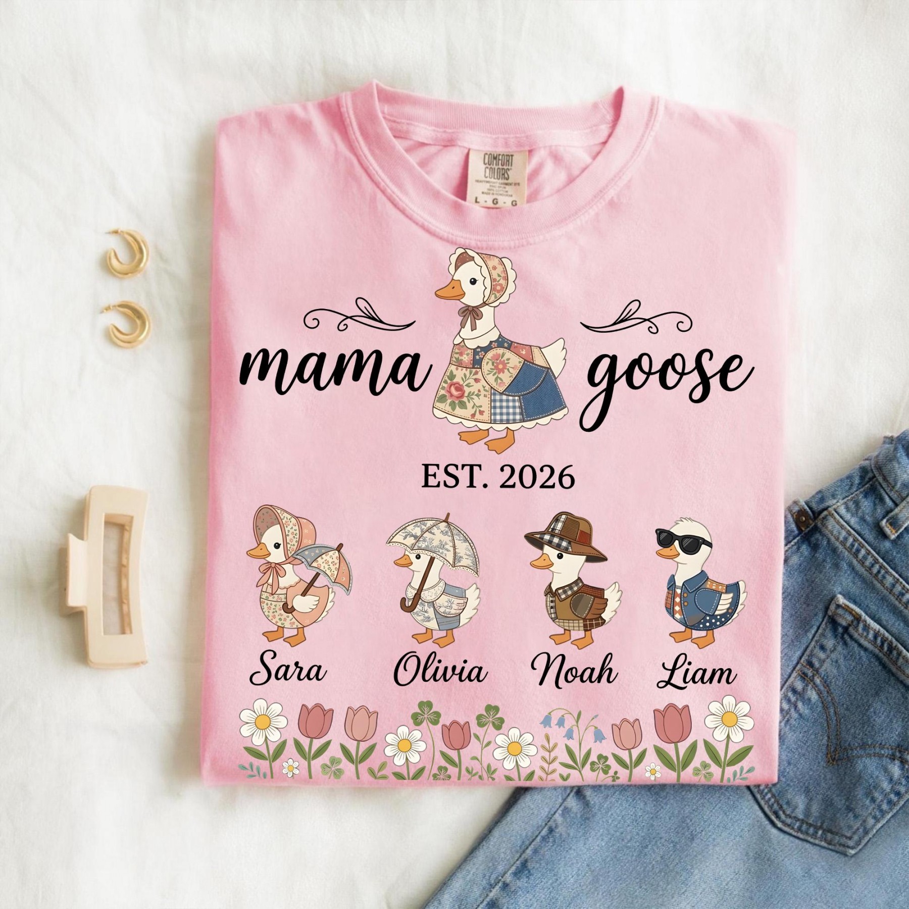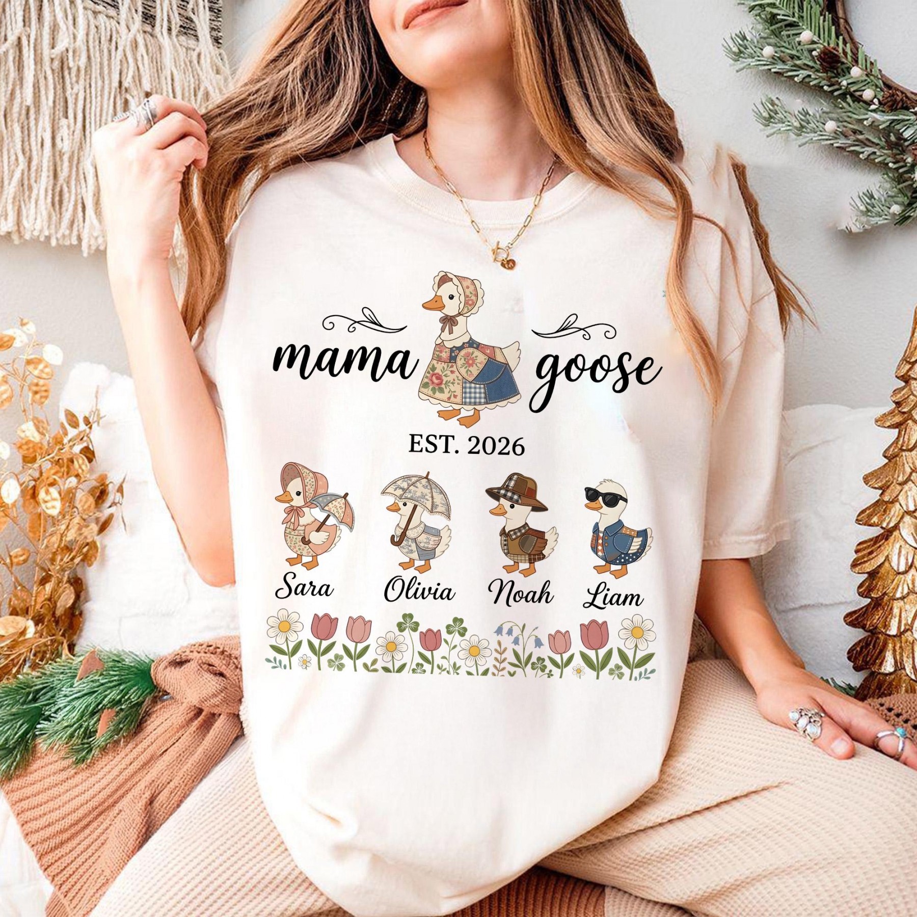 Personalized Mama Goose Shirt With Kids Names, Custom Family Goose Tee, Mothers Day Gift for Mom