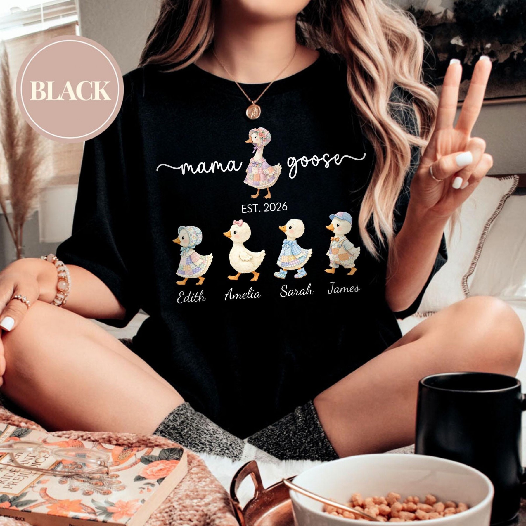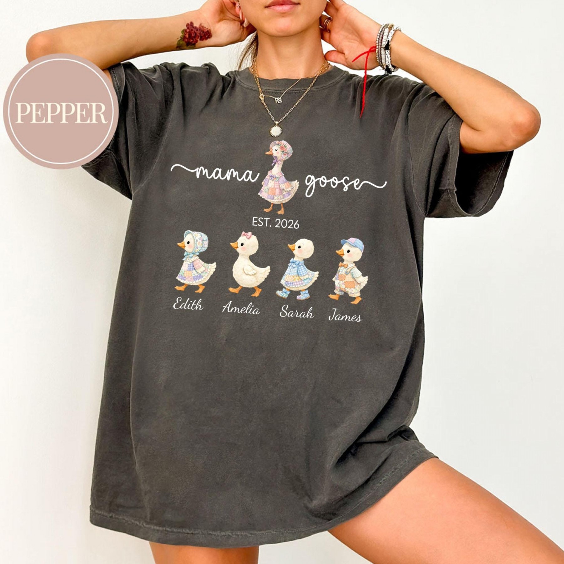 Personalized Mama Shirt With Kids Names, Family Goose T-Shirt, Custom Mom Gift, Mothers Day Gift for Mom