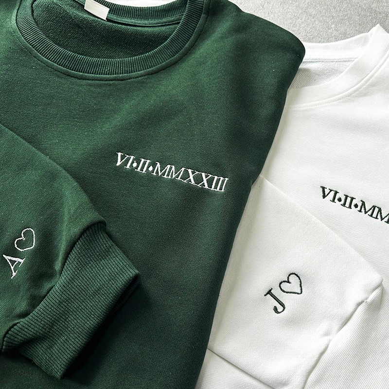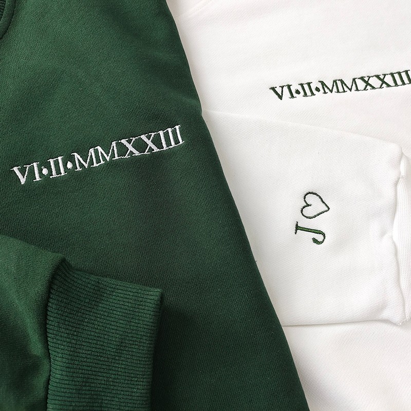 Personalized Embroidered Roman Numeral Hoodie Couples Gift Date Hoodie Initial on Sleeve Engagements 1st Anniversary Gift