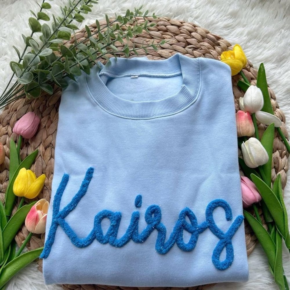 Personalized Chenille Yarn Embroidered Sweatshirt with Name Game Day Fuzzy Letter Team Spirit Shirt Football Moms Outfit