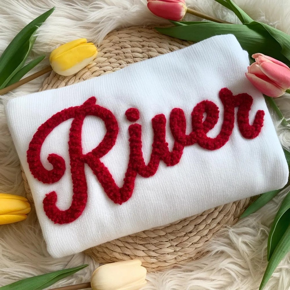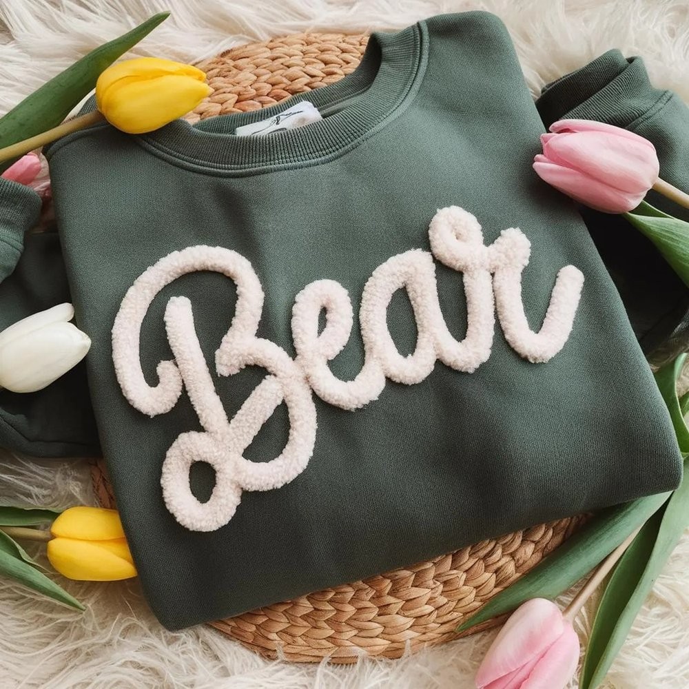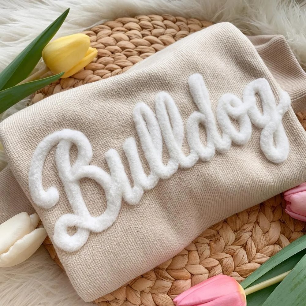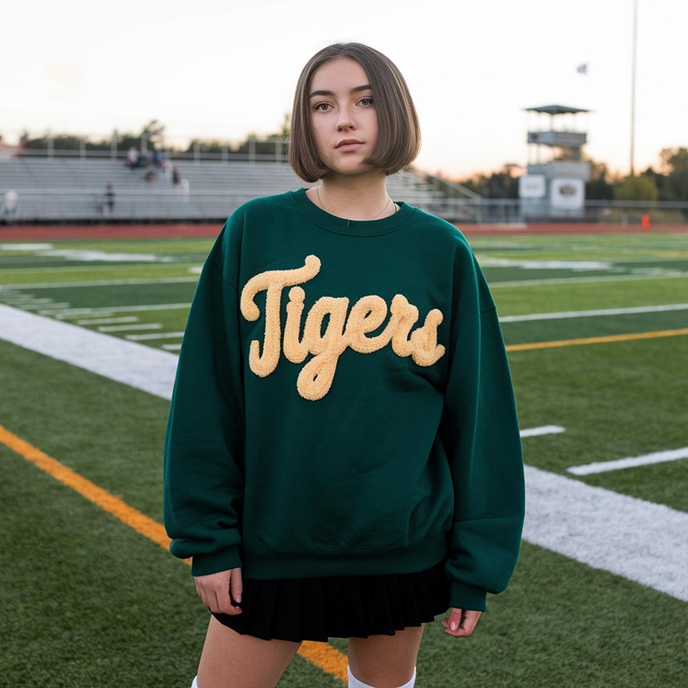 Personalized Chenille Yarn Embroidered Sweatshirt with Name Game Day Fuzzy Letter Team Spirit Shirt Football Moms Outfit