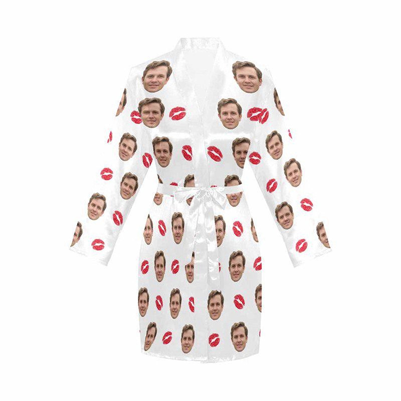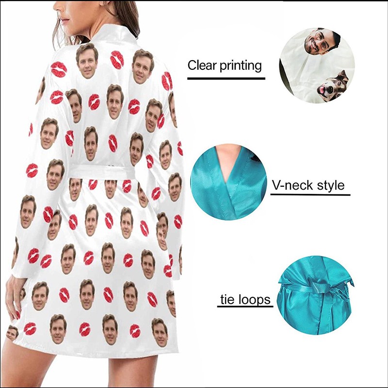 Personalized Couple Face Pajamas Robe Photo Night Robe Bathrobe Valentines Day Gift