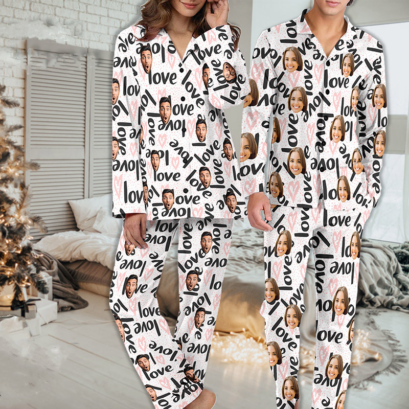 Personalized Couple Photo Pajamas Set for Lovers Long Sleeve PJS Sets Bridal Party Valentines Day Gift Anniversary Gifts