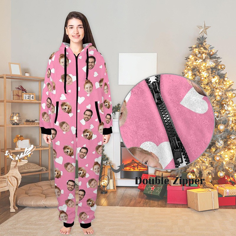 Have you ever have a couple pajamas for valentine's day? Do you want an item which have you and your pattern on? Introducing our exquisite Customize Zipper One-Piece Pajamas, the ultimate fusion of comfort, style, and personalized touch. Crafted with meticulous attention to detail, these pajamas are designed to elevate your nighttime routine into a luxurious experience.Boasting a sleek one-piece silhouette, our pajamas feature a full-length zipper that runs smoothly from top to bottom, allowing for easy on-and-off access while maintaining a sleek, modern aesthetic.