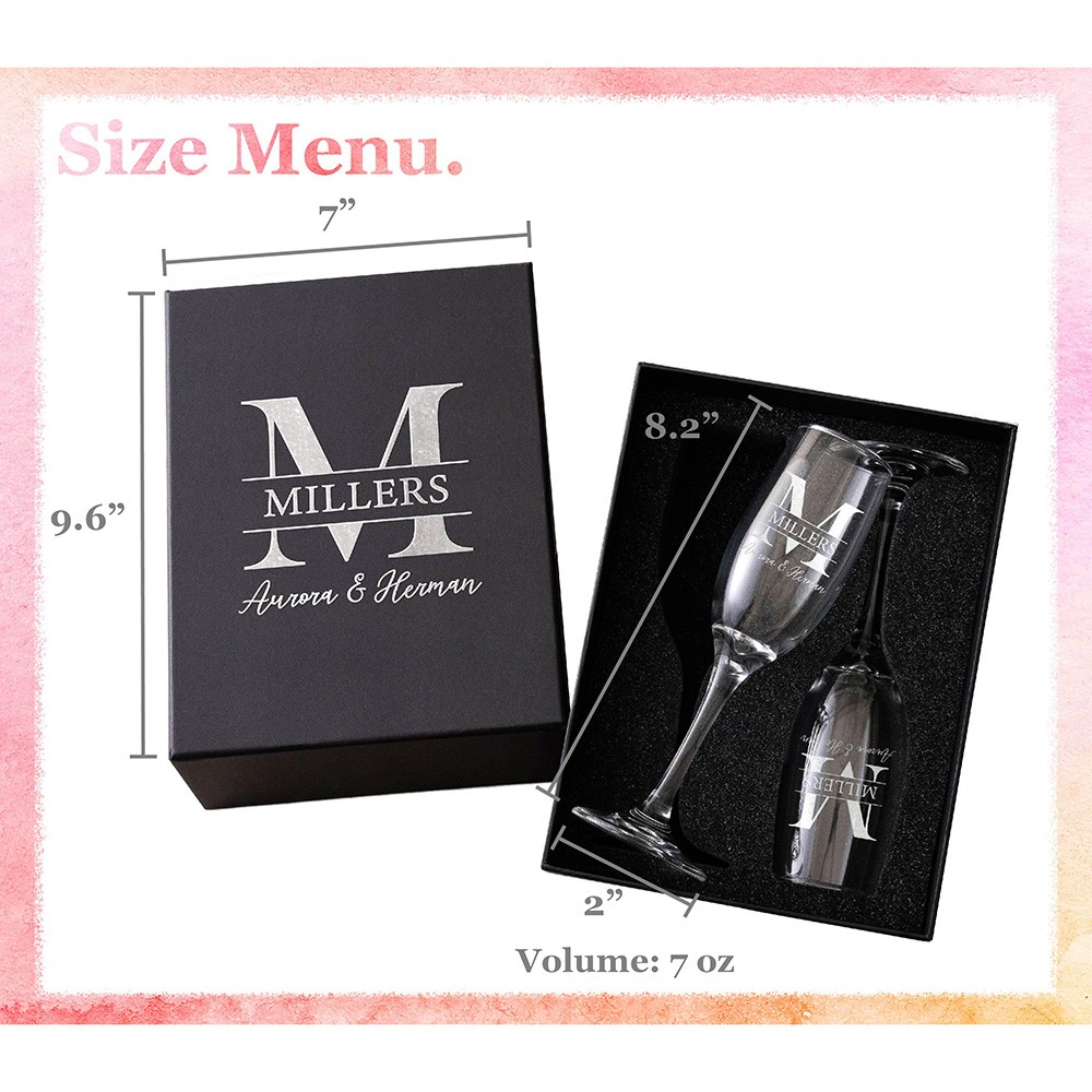 Personalized Champagne Flutes Set of 2 Engraved Wedding Toasting Glasses for Bride and Groom Wedding Decor
